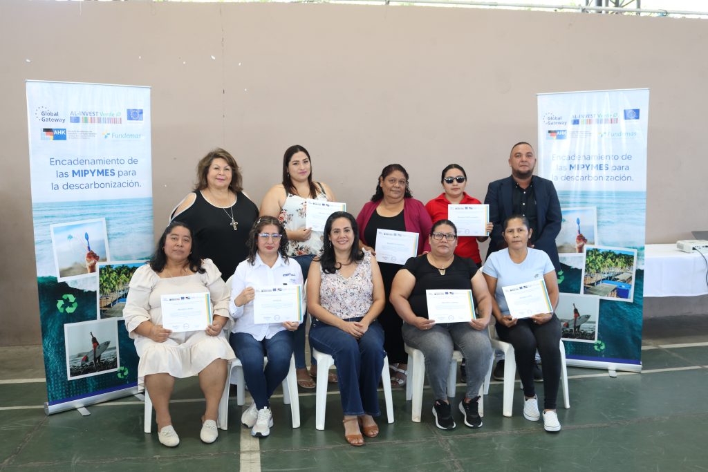 San Salvador, marzo 2026–160 MIPYMES han sido sensibilizadas con herramientas y metodologías de eco eficiencia, biodiversidad, gestión de residuos y de riesgos por desastres, por parte del proyecto “Encadenamiento de MIPYMES para la Descarbonización”, impulsado por el programa AL-INVEST Verde de la Comisión Europea, en colaboración con la Fundación Empresarial para la Acción Social (FUNDEMAS) y la Cámara Alemana Salvadoreña de Comercio e Industria (AHK).